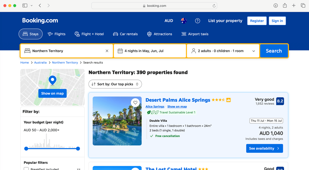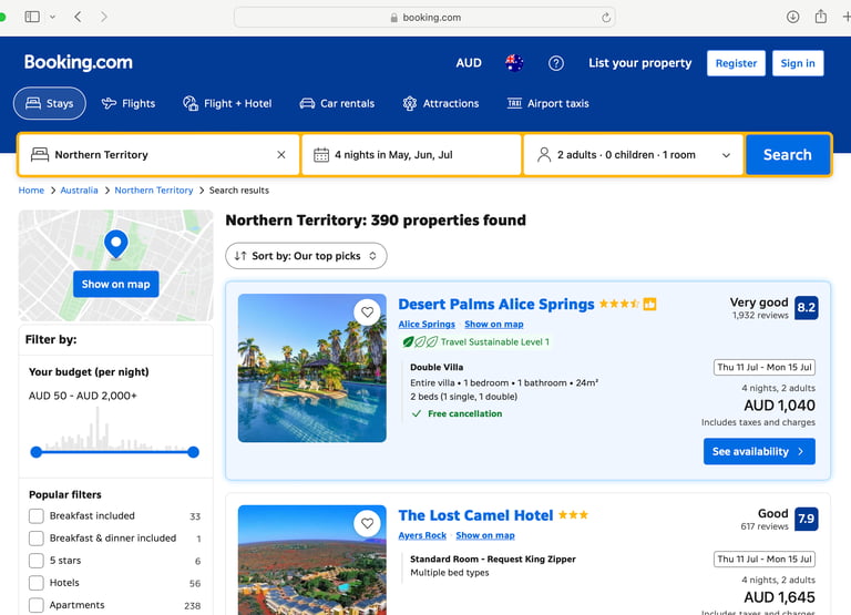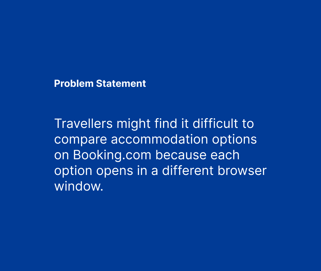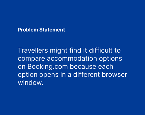 Looking at the Booking.com website, the problem was identified. When users searched for accommodation, each option opened in a new window making it difficult to compare options and decide.