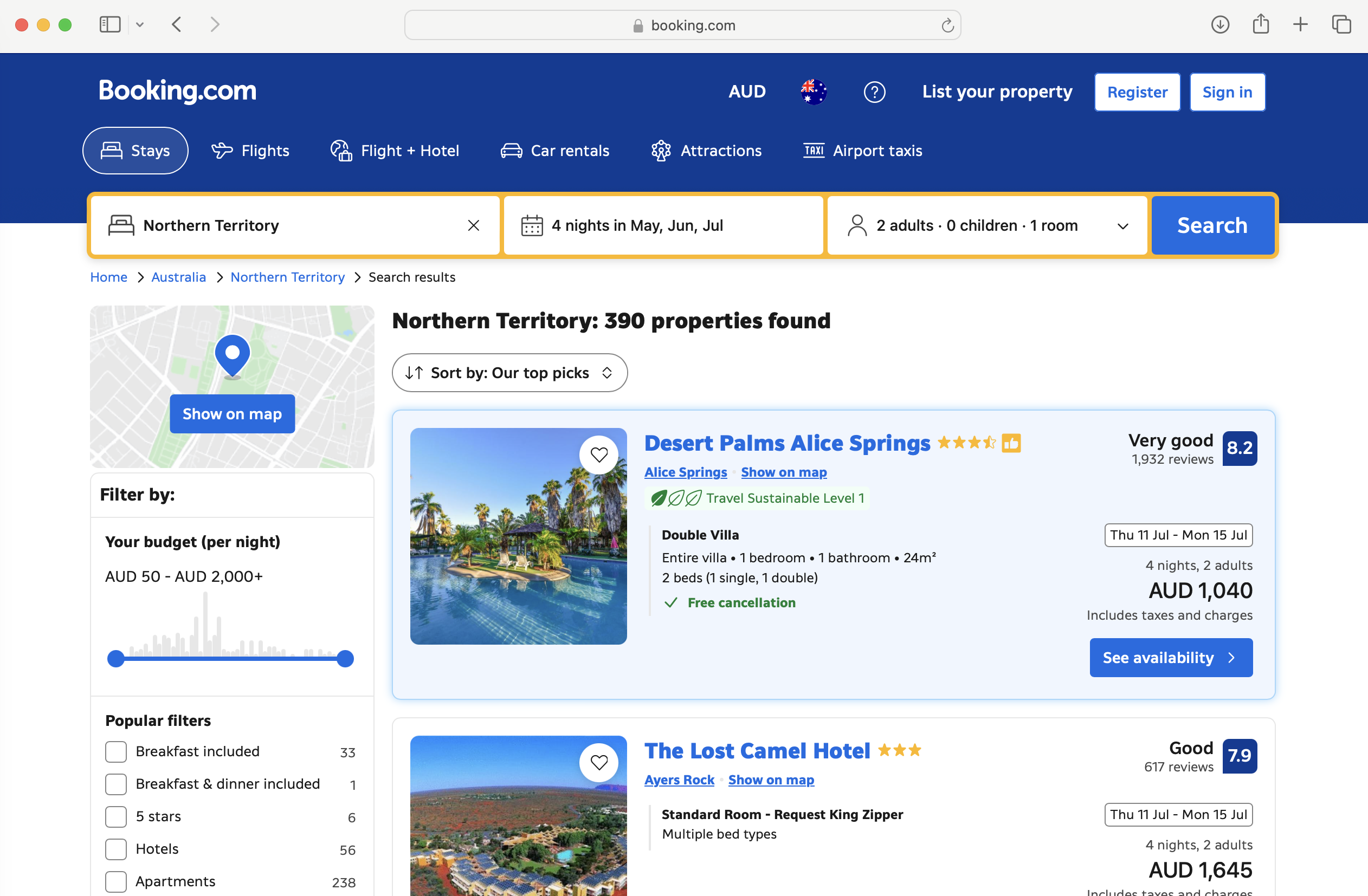 Further research looked at competitors to determine what comparison tools were in use. Whilst Air BnB had none, Wotif and Expedia had a tool that needed to be toggled on for use.